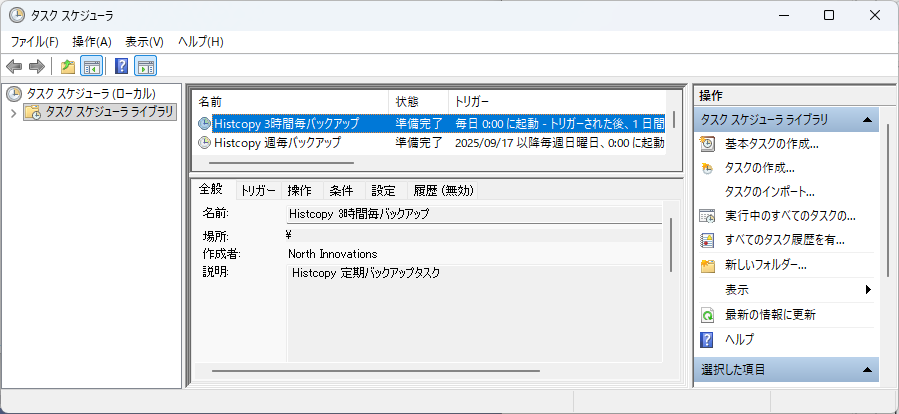 Histcopy のコマンドラインオプションを変更したい場合は、バッチファイルの内容をメモ帳などで直接編集してください。